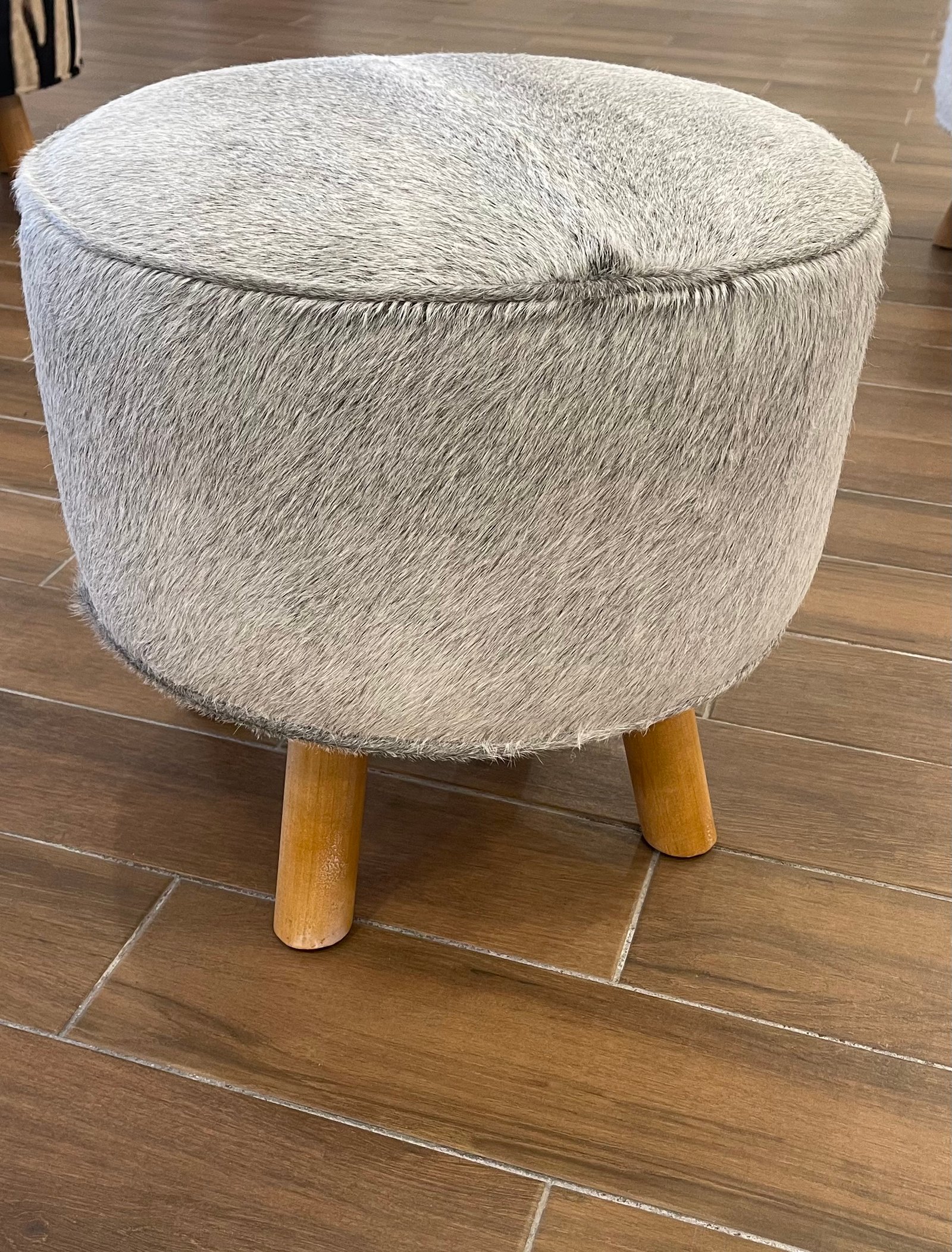 This version of the ottoman is wrapped in a smoky grey feathery calfskin. The grey and white with accents of black, give it a ash and coal look that is hard to find. It is great for an accent piece. Perfect for comfort and a muted aesthetic.